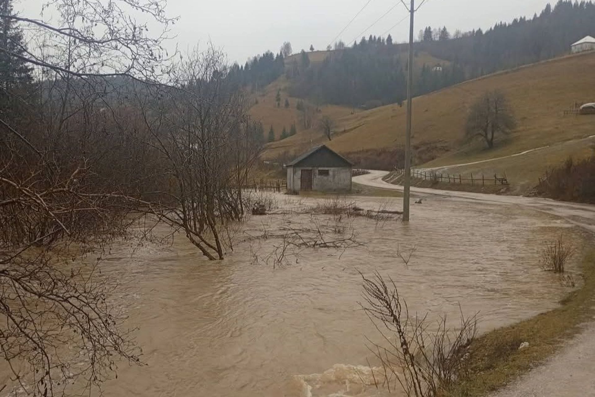 Zbog padavina izlila se rijeka u selu Bliškovo. Na fotografijama sa terena se može vidjeti da su objekti ugroženi.