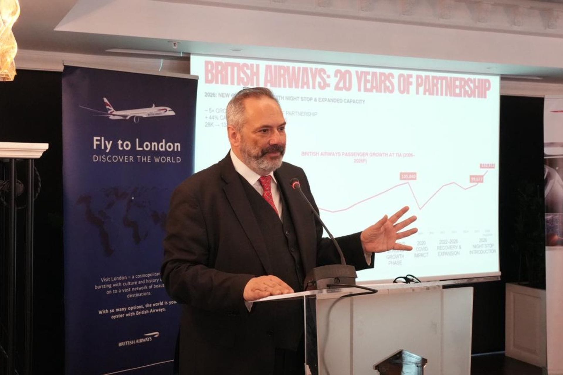 Od kraja marta 2026. godine, British Airways povećao je broj letova između Tirane i Londonskog Heathrow na 13 nedeljno tokom letnje sezone, što predstavlja povećanje od 75% u poređenju sa istim periodom 2025. godine.