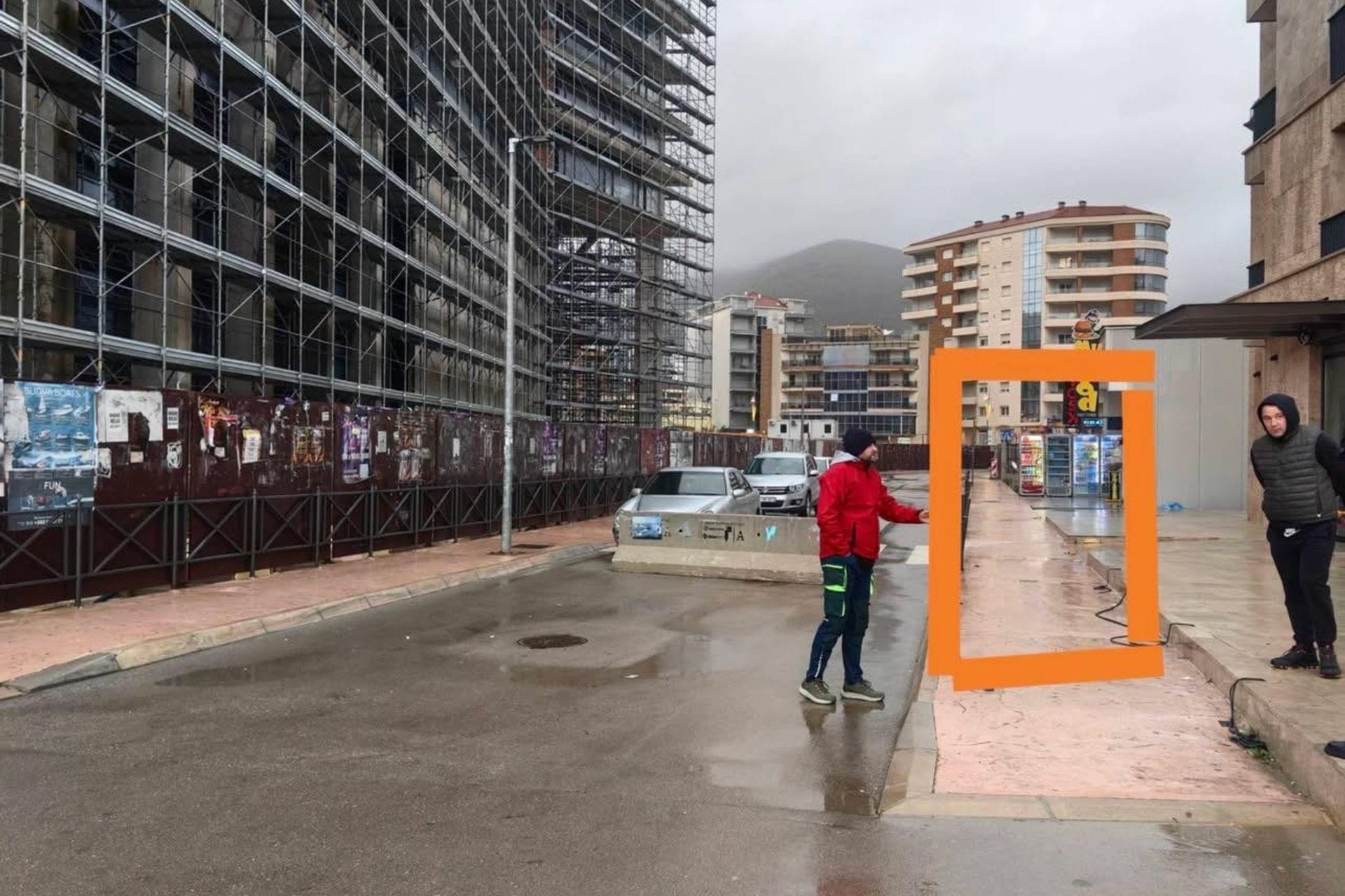 Oštećena ulica je obezbijeđena betonskim barijerama.