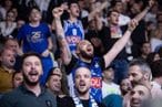 Podgorička dvorana je krcat, u njoj je oko 6.000 navijača, te se meč za sada igra u izuzetnoj atmosferi.