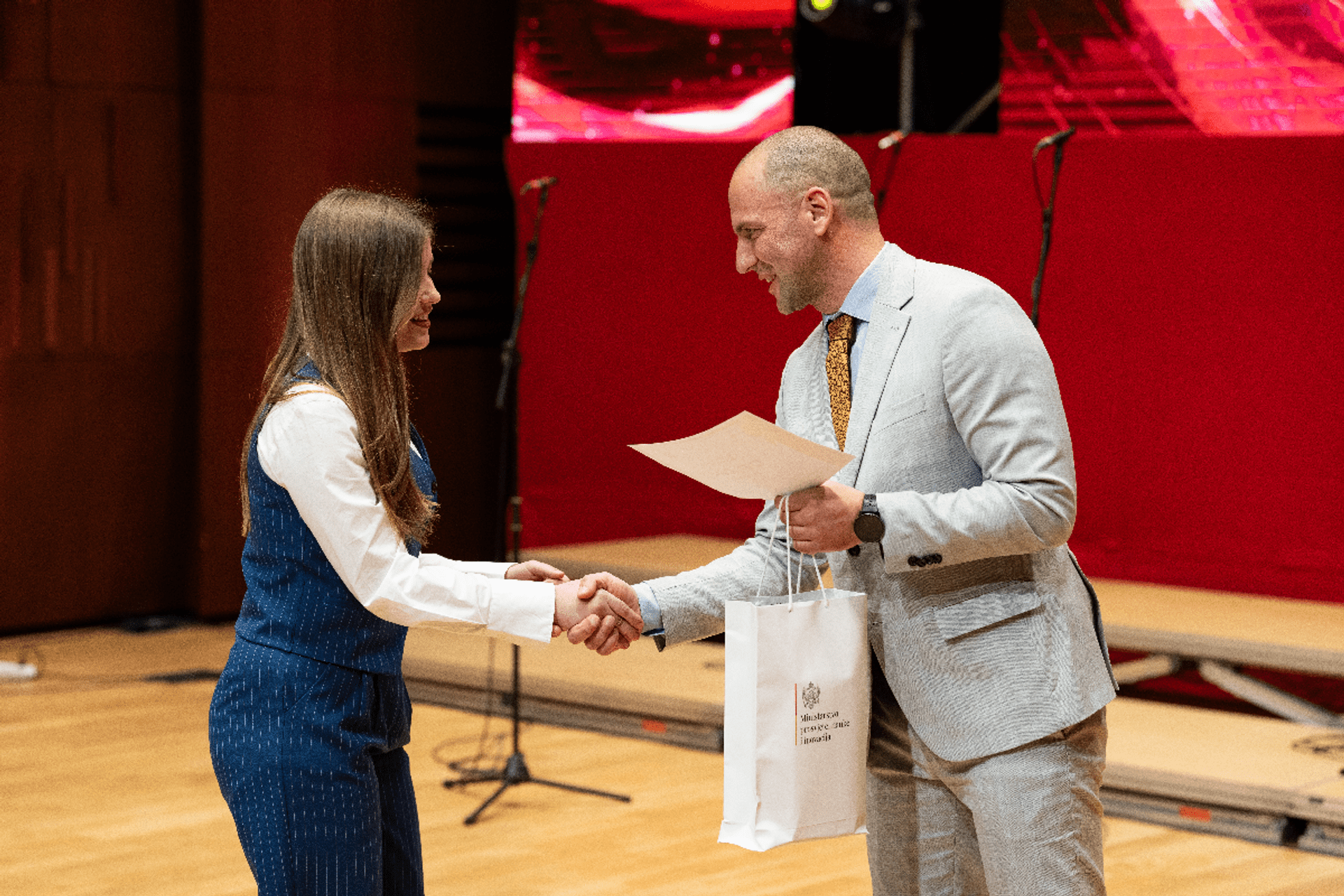 “Nagrade za osvojeno prvo mjesto i najboljim školama uručila je ministarka prosvjete, nauke i inovacija Anđela Jakšić-Stojanović, direktor Ispitnog centra Miloš Trivić uručio je nagrade takmičarima koji su zauzeli drugo mjesto, kao i najboljim mentorima, a sekretar u MPNI Marko Šljukić uručio je nagrade učenicima koji su osvojili treće mjesto”, kaže se u saopštenju.