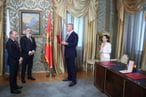 „Uvažena gospodo, kapetani regenti San Marina, veliko mi je zadovoljstvo da vam uručim visoka crnogorska državna priznanja Orden Crnogorske velike zvijezde koji država Crna Gora dodjeljuje za naročite zasluge u očuvanju i unaprijeđenju prijateljstva i međudržavne saradnje u između naše i drugih država. Danas mi je veliko zadovoljstvo da predajem ovo priznanje vama, odam poštovanje prema San Marinu, prema svim kapetanima regentima koji su doprinijeli ovoj saradnji i prema vama lično“, rekao je Đukanović.