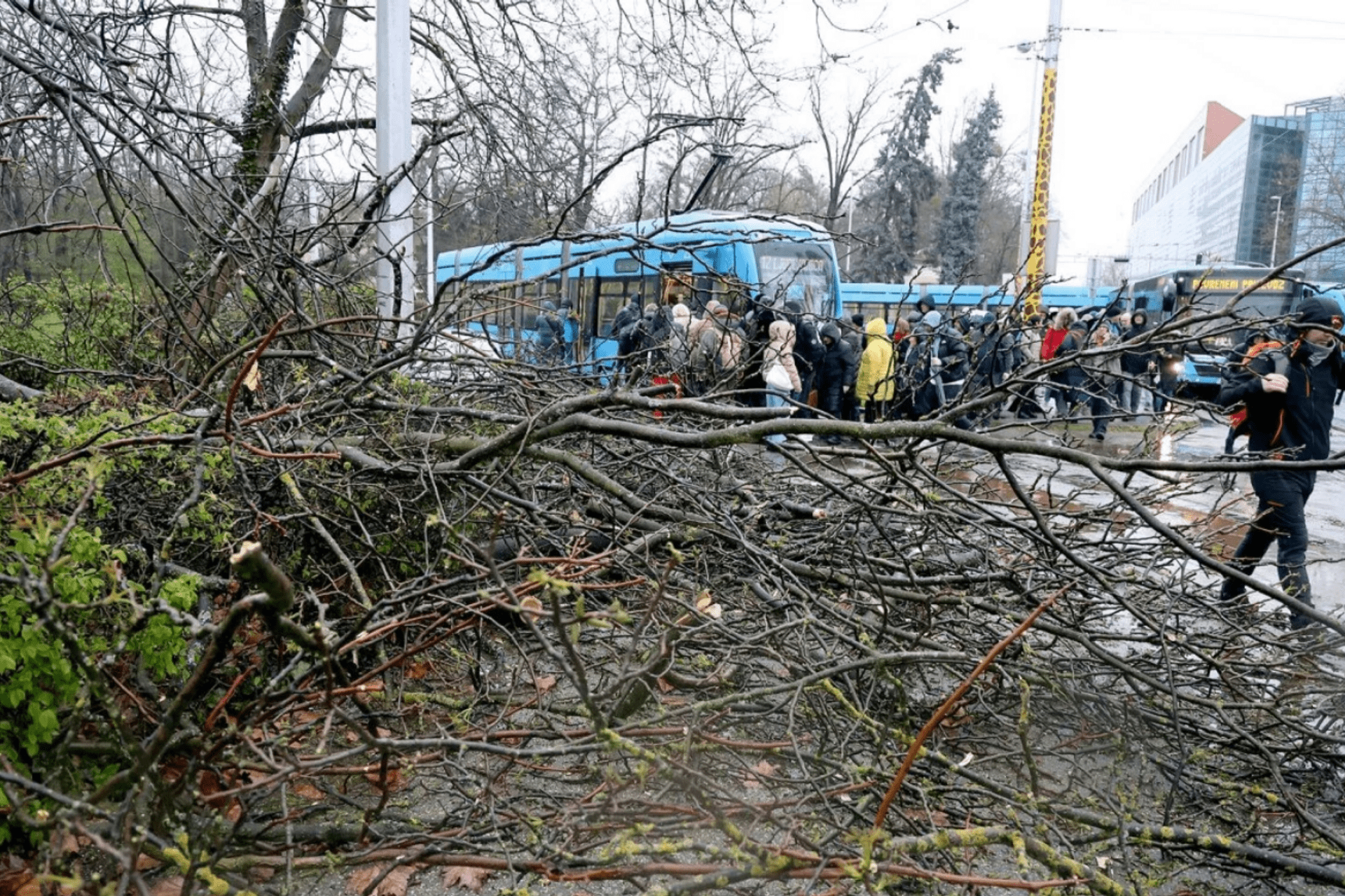 Zagreb nije okovan snijegom, ali je olujni vjetar oborio stabla, nosio krovove, građevinske konstrukcije, ograde i druge objekte koji nijesu snažno pričvršćeni.