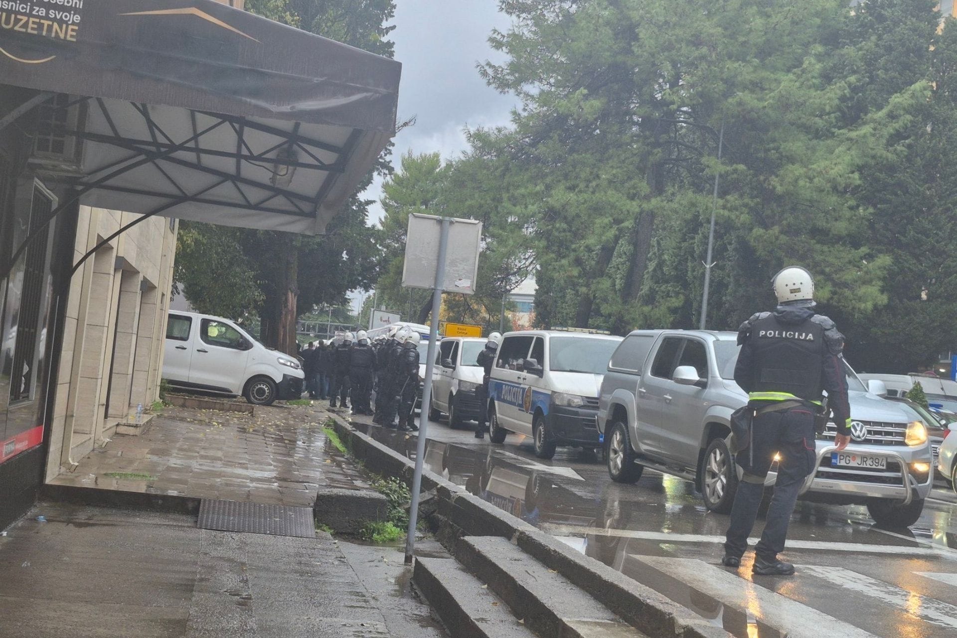 Jake policijske snage blokirale su danas centar Podgorice uoči utakmice reprezentacija Crne Gore i Hrvatske.