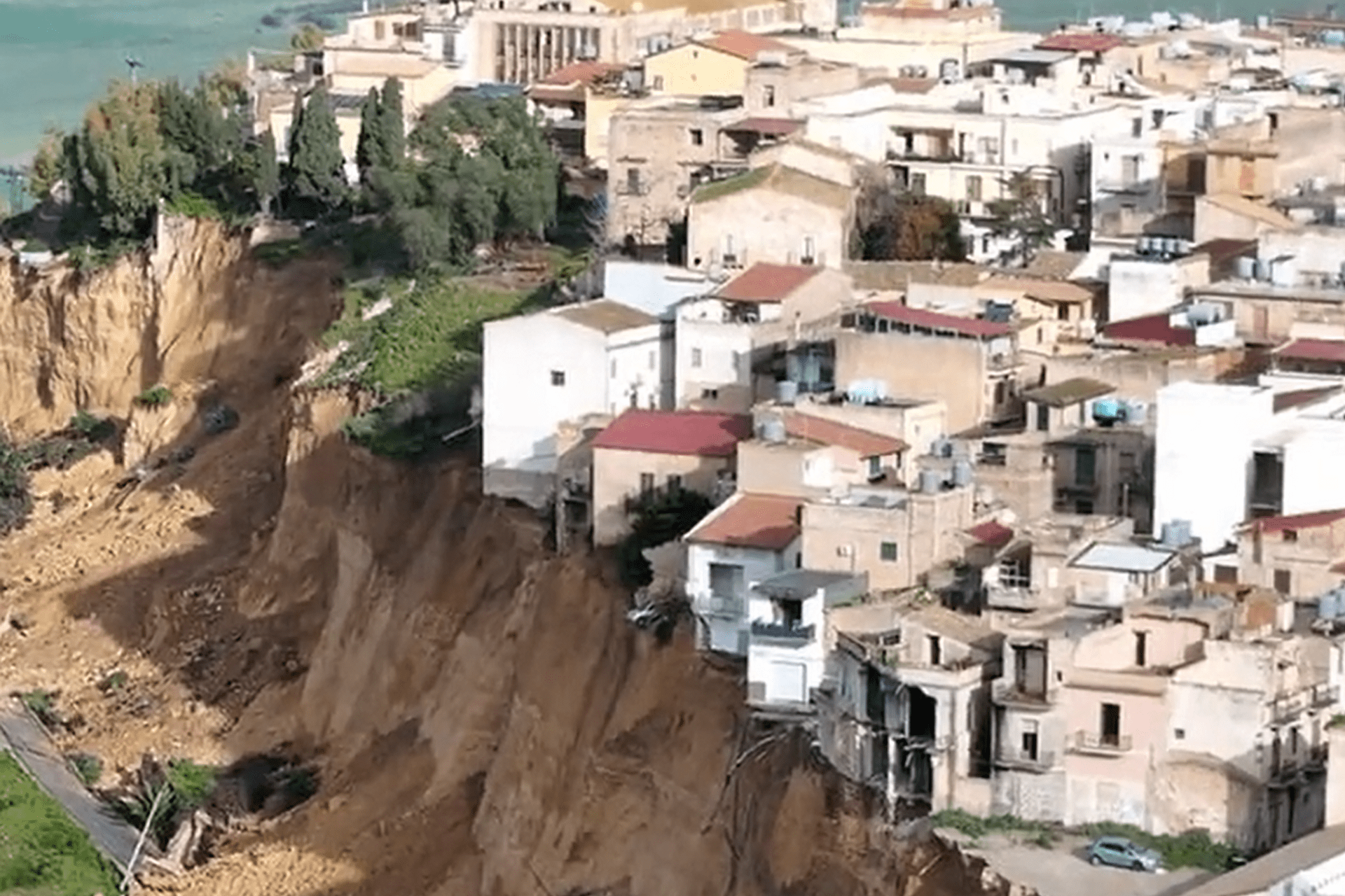 Evakuisani ljudi strijepe za kuće, pri čemu više objekata visi sa litica nastalih nakon klizišta.