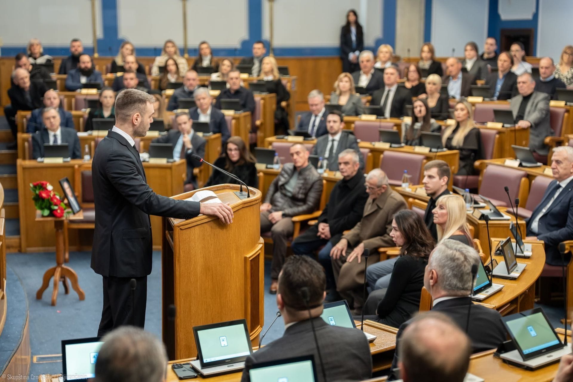 Sjednicu je otvorio predsjednik Skupštine Andrija Mandić. On je istakao Jovanovićev doprinos parlamentarnom životu Crne Gore.