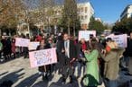 "Izražavamo protest u ime LSCG, koji se već duže vrijeme bori da Zakon o zabrani fašitičkih organizacija i njenih simbola uđe u skupštinaku proceduru. Taj zakon je predat u oktobru i nažalost već tri puta u godinu dana nije uvršten u dnevni red”, kazao je predsjednik Liberalne partije, Andrija Popović.