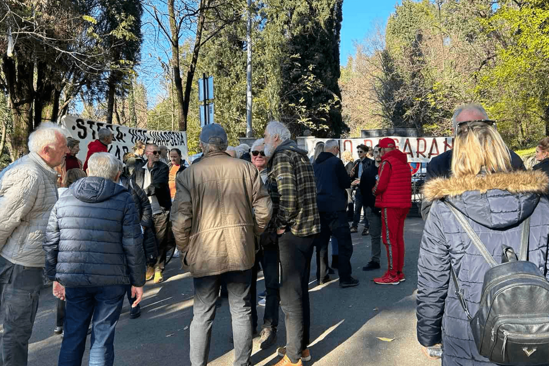 Na glavnoj kapiji na ulazu na Goricu bile su okačene poruke "STEGA nije uhapšena, a kad će ne znamo" i "No pasaran".