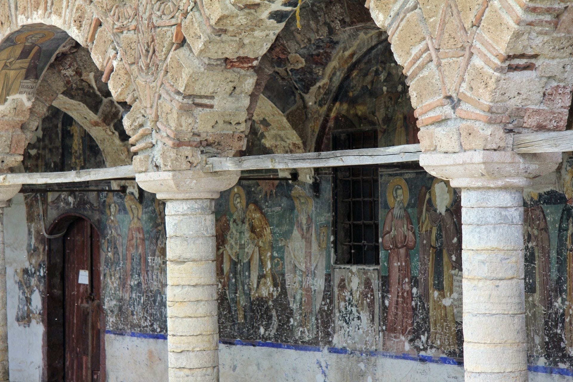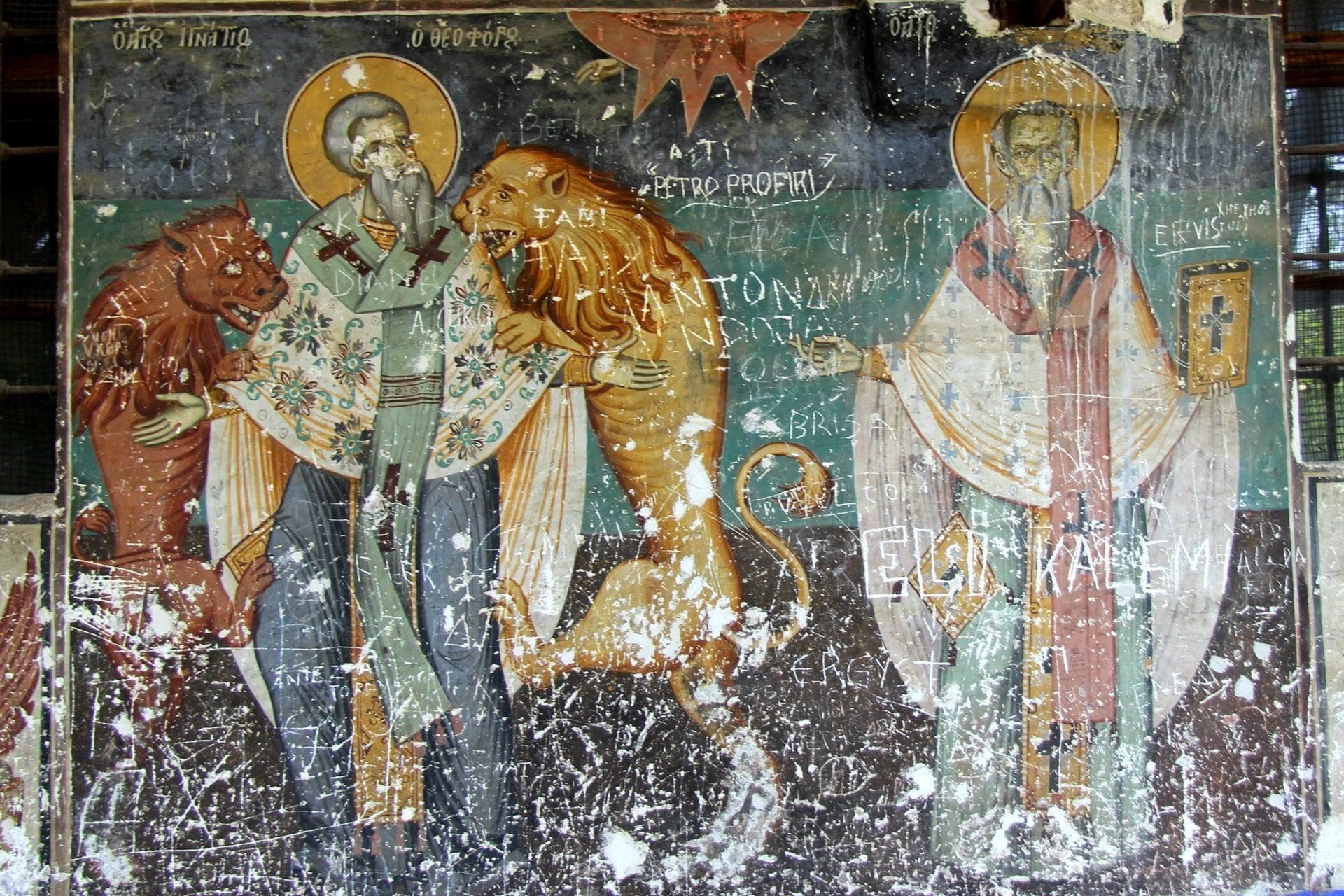 Nažalost, te veličanstvene freske su ozbiljno oštećene raznim natpisima. Oslikani zidovi su izgrebani imenima, a lica mnogih svetaca su uništena. Čisti vandalizam! Možete samo zamisliti koliko su bile impresivne u to vrijeme.