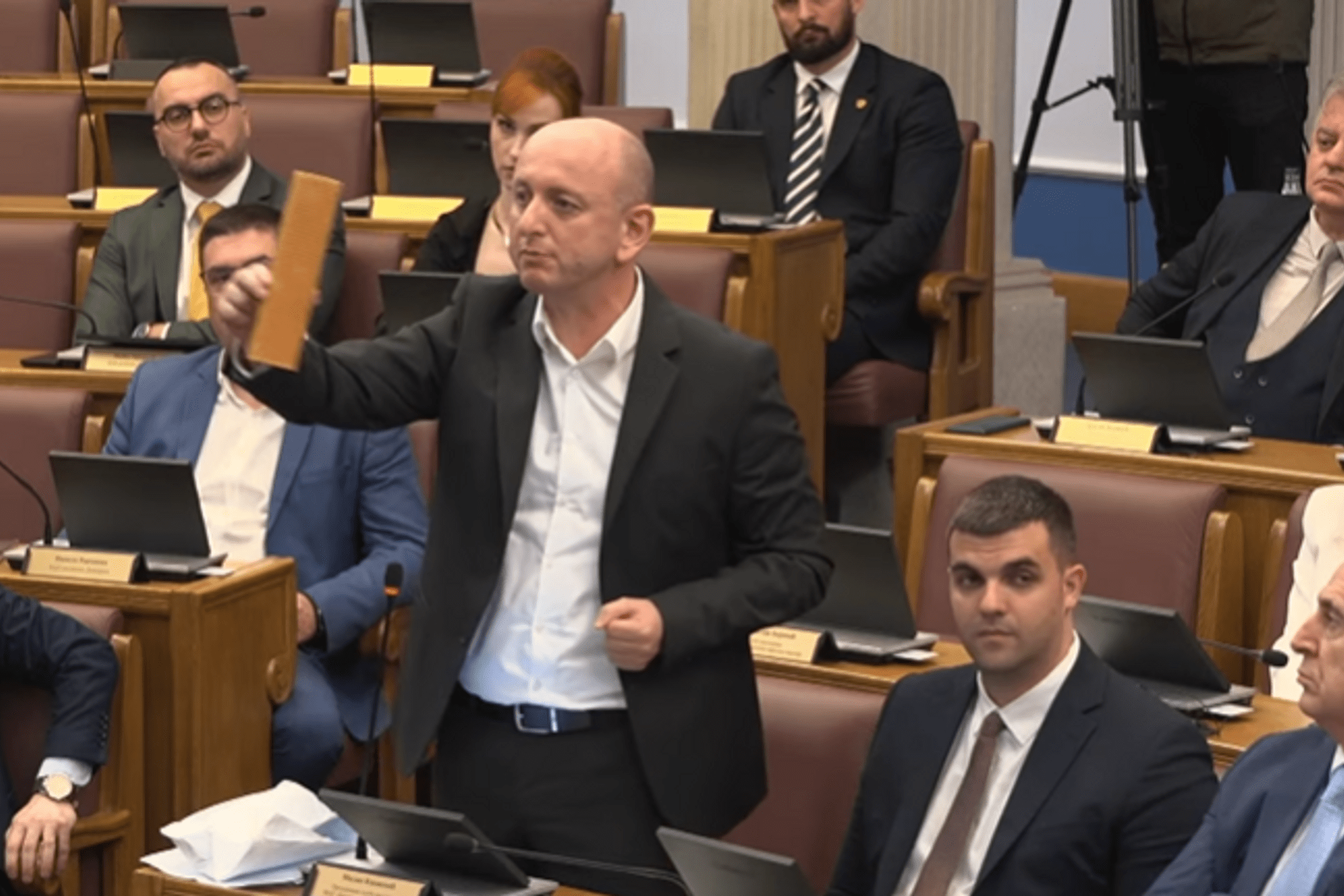 "Ovo je neozbiljno, ovo je bezbjedosno pitanje", ukazao je Nenezić. Data je kratka pauza nakon koje je sjednica nastavljena, dok se premijer vratio u plenarnu salu.