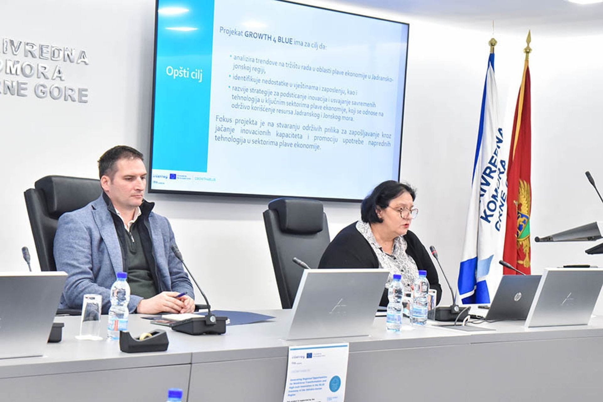 Projektna menadžerka GROWTH4BLUE projekta, Tanja Radusinović, predstavila je ciljeve projekta, dosadašnje aktivnosti i naredne korake, ističući da plava ekonomija predstavlja jedan od ključnih razvojnih potencijala Jadransko-jonskog regiona, ali i oblast u kojoj su neophodni koordinisani pristup, savremene vještine i jača veza između obrazovanja i tržišta rada.