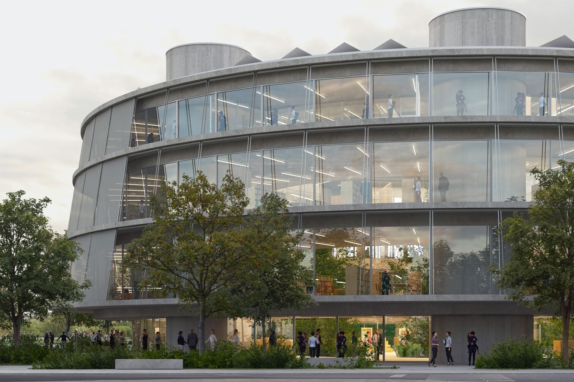Pobjedničko rješenje, prema izvještaju žirija, je projekat koji predlaže novu biblioteku kao “landmark” i centralni prostorni orijentir kampusa, čija kružna forma integriše pješačke tokove, otvara prostor ka kampusu i gradu te stvara radijalnu unutrašnju organizaciju oko zelenog atrijuma.