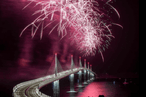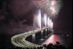 Nakon obraćanja zvaničnika i onih koji su učestvovali u gradnju 357 miliona eura vrijednog mosta počeo je veliki vatromet, a sa kopnene strane krenula je Nevera, automobil kompanije, a s pelješke automobil trostrukog evropskog prvaka na brdskim utrkama Nike Pulića.