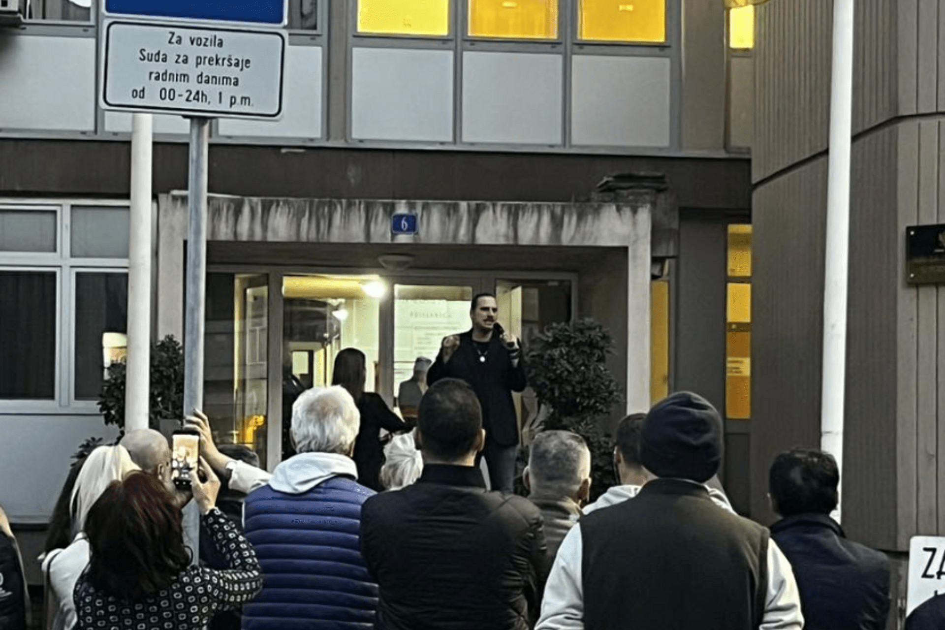 Povod je bilo današnje ročište protiv Aleksandra Ljumovića, profesora Aleksandra Radomana i reditelja Danila Marunovića. No, ono nije održano - policajci nijesu došli u sud, tako da je novo ročište zakazano za prvi jun.