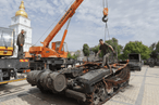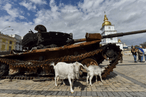 U fotogaleriji možete pogledati dio ruske opreme koji je izložen na kijevskom trgu Mikhailivska.