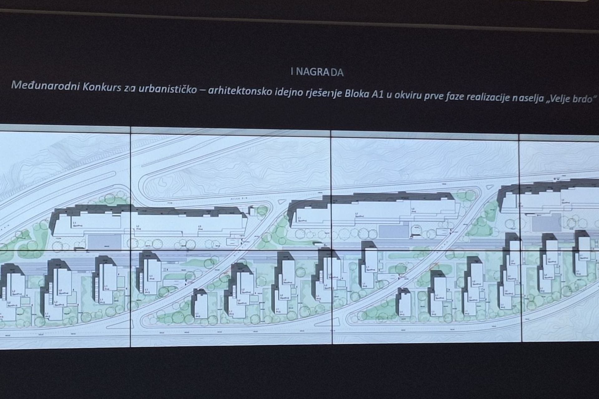 Kako je ranije saopšteno, Blok A1 biće prvi od 12 blokovskih djelova u okviru naselja Velje brdo. Zauzimaće površinu od oko 60 hiljada kvadrata.