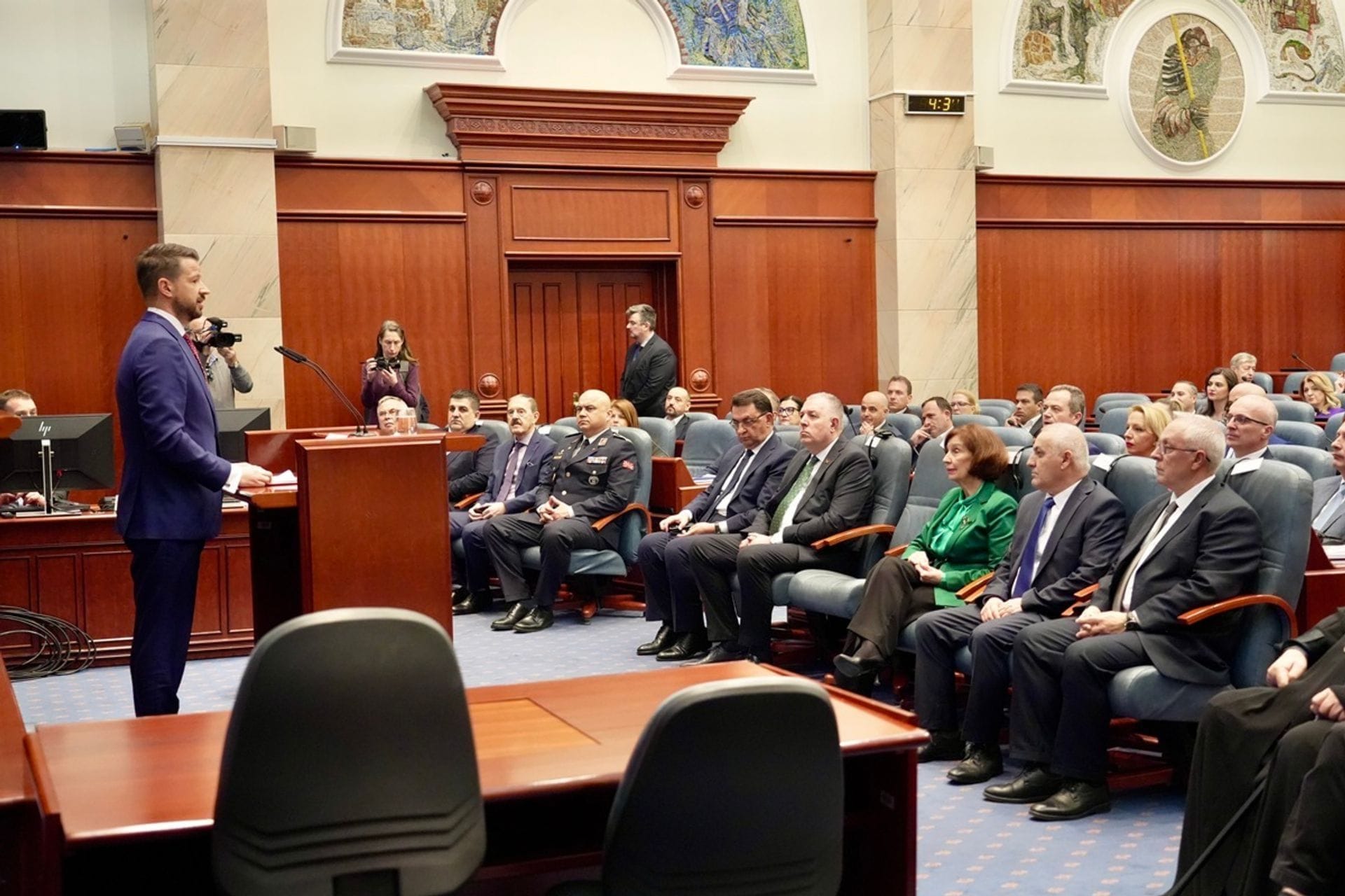 „Izuzetno mi je zadovoljstvo što imam priliku da vam se obratim danas, u okviru moje prve zvanične posjete Republici Sjevernoj Makedoniji. Govoriti na ovom mjestu za mene predstavlja i čast i odgovornost, naročito imajući u vidu vizionarske riječi koje su ovdje izricali velikani – od Metodija Andonova-Čenta, koji je dao istorijski doprinos razvoju vašeg parlamentarizma, do Kira Gligorova, koji je upravo sa ove govornice, u najodsudnijim trenucima, trasirao put nezavisne, mirne i dostojanstvene Makedonije. Njihova djela utkala su temelje savremene makedonske državnosti, a njihove ideje i danas služe kao svetionik slobode i dostojanstva.
