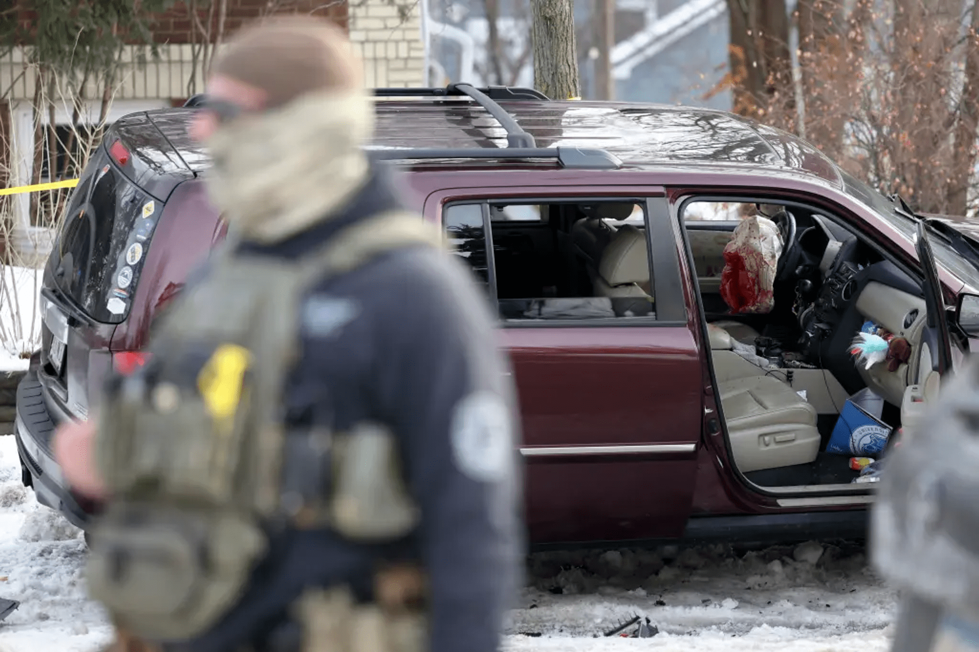 Iz različitih uglova vide se džip-terenac kako blokira ulicu u stambenoj četvrti u Mineapolisu.