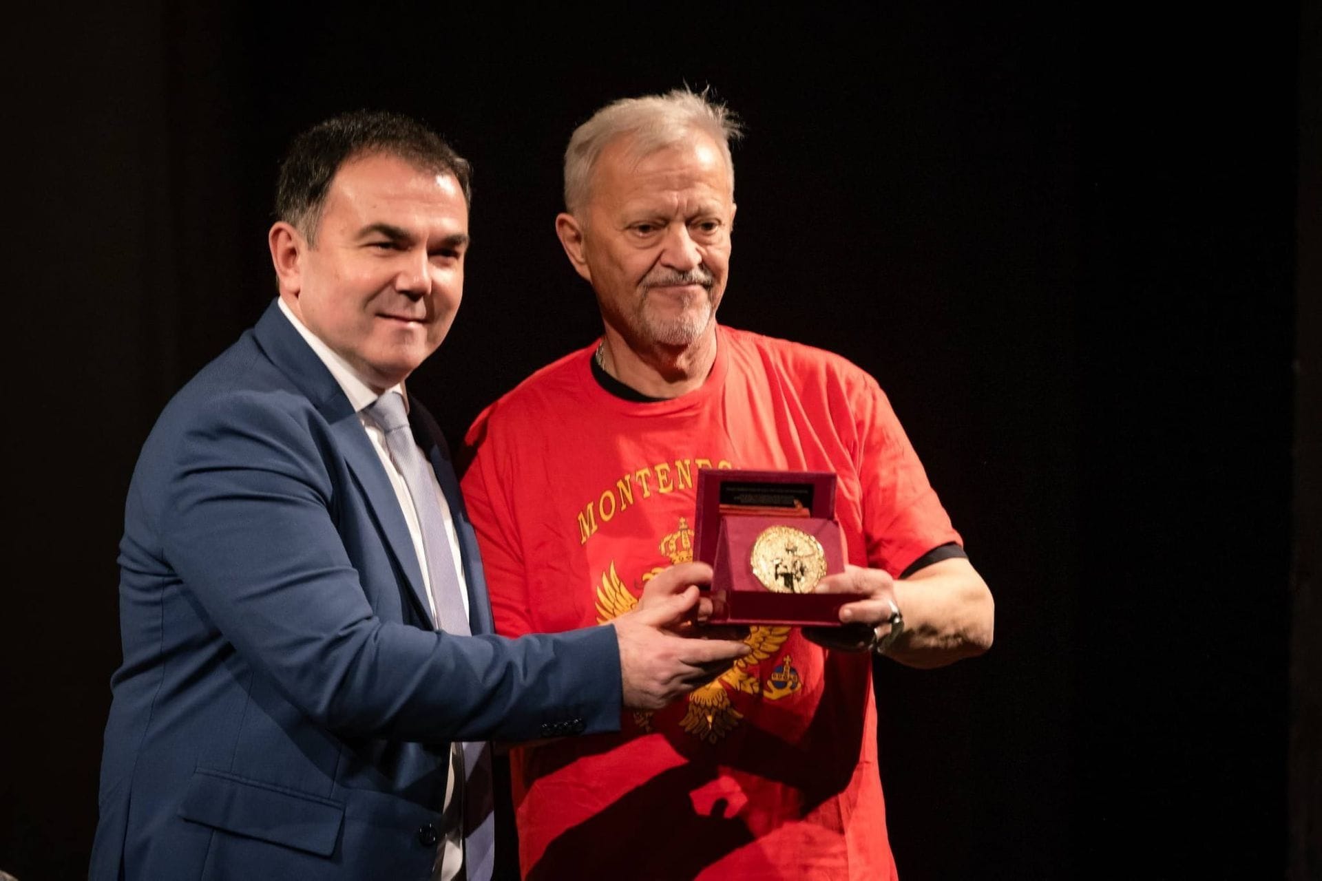 Kako je saopšteno iz Prijestonice, Đurašković je poklon uručio nakon završetka autorske predstave "Sve je do nas" glumca Hadžihafizbegovića, koja je izvedena u Kraljevskom pozorištu „Zetski dom“.